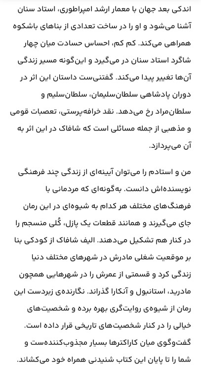من و استادم نویسنده= الیف شافاک/ مترجم= مینا امیری/ زمینه = رمان / قطع= رقعی،شومیز