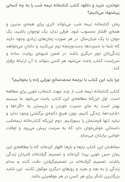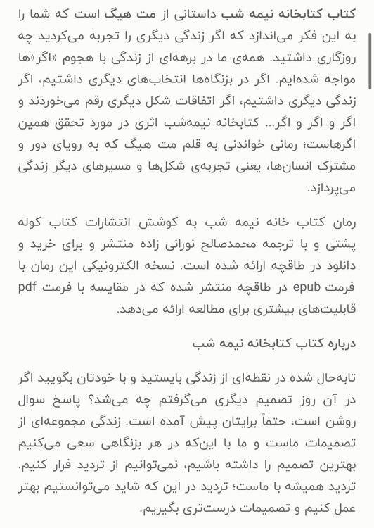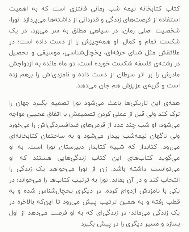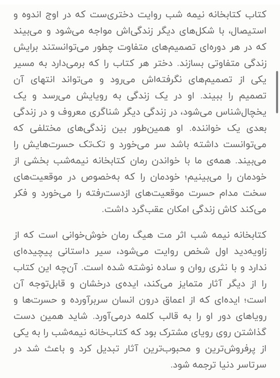کتابخانه نیمه شب /نویسنده=مت هینگ /مترجم=احمد عامری/ زمینه= کودک و نوجوان/ قطع=رقعی شومیز ناشر= نور امید