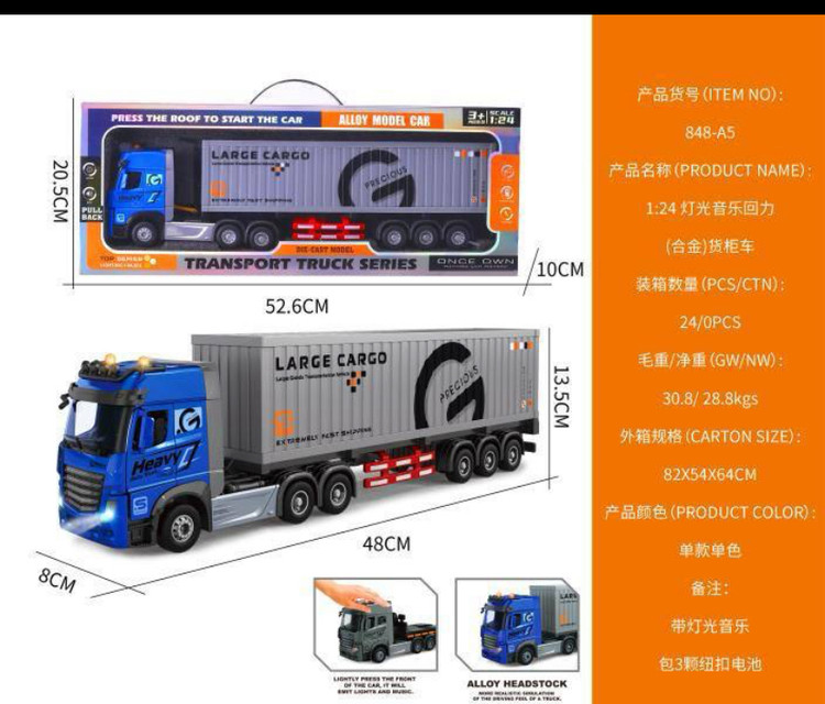 ✅ماشین کانیتنر فلزی •موزیکال،چراغدار •سایز بزرگ •سایز:1:24 آیتم:5-848