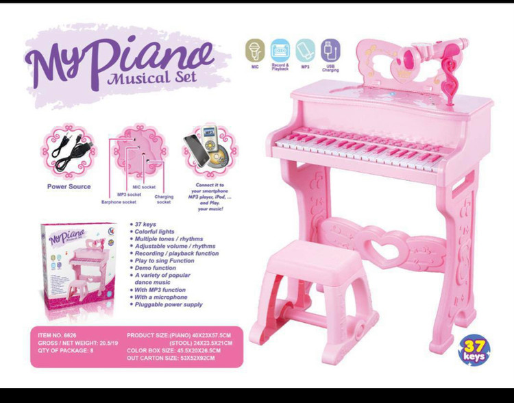 📌پیانو سایز بزرگ همراه صندلی میکروفن قابلیت اتصال به گوشی شارژی برقی 💥اینم 6626